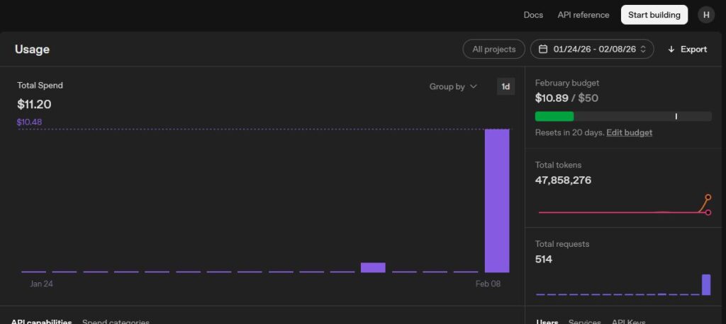 Der „what the fuck“-Moment kam dann aber beim Check in der OpenAI-Console.